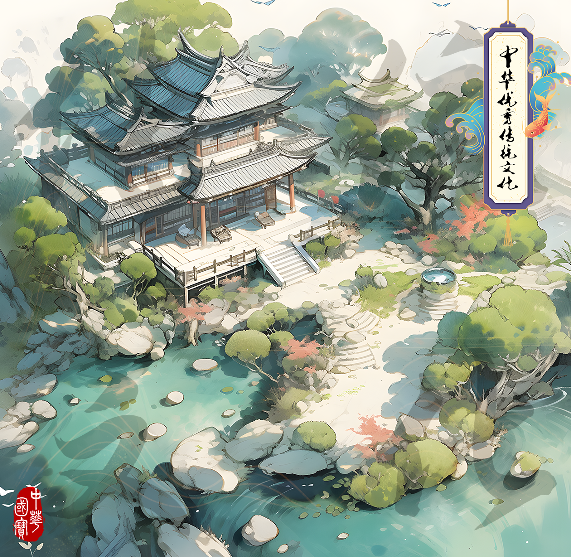 池塘建筑意韵-池塘与建筑-中华优秀传统文化