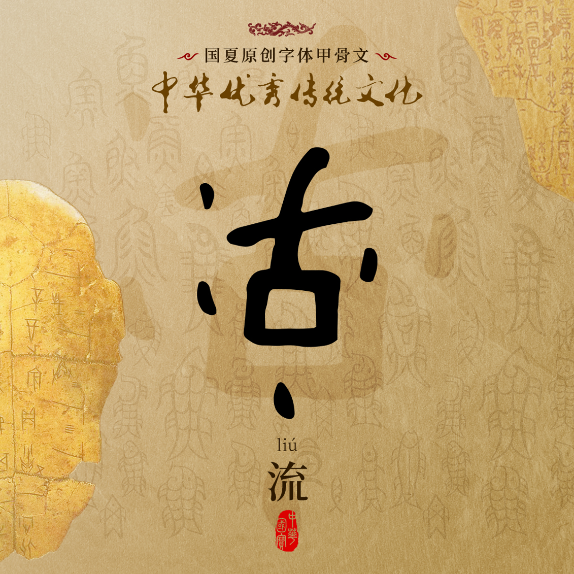 流-国夏字库甲骨文-中华优秀传统文化