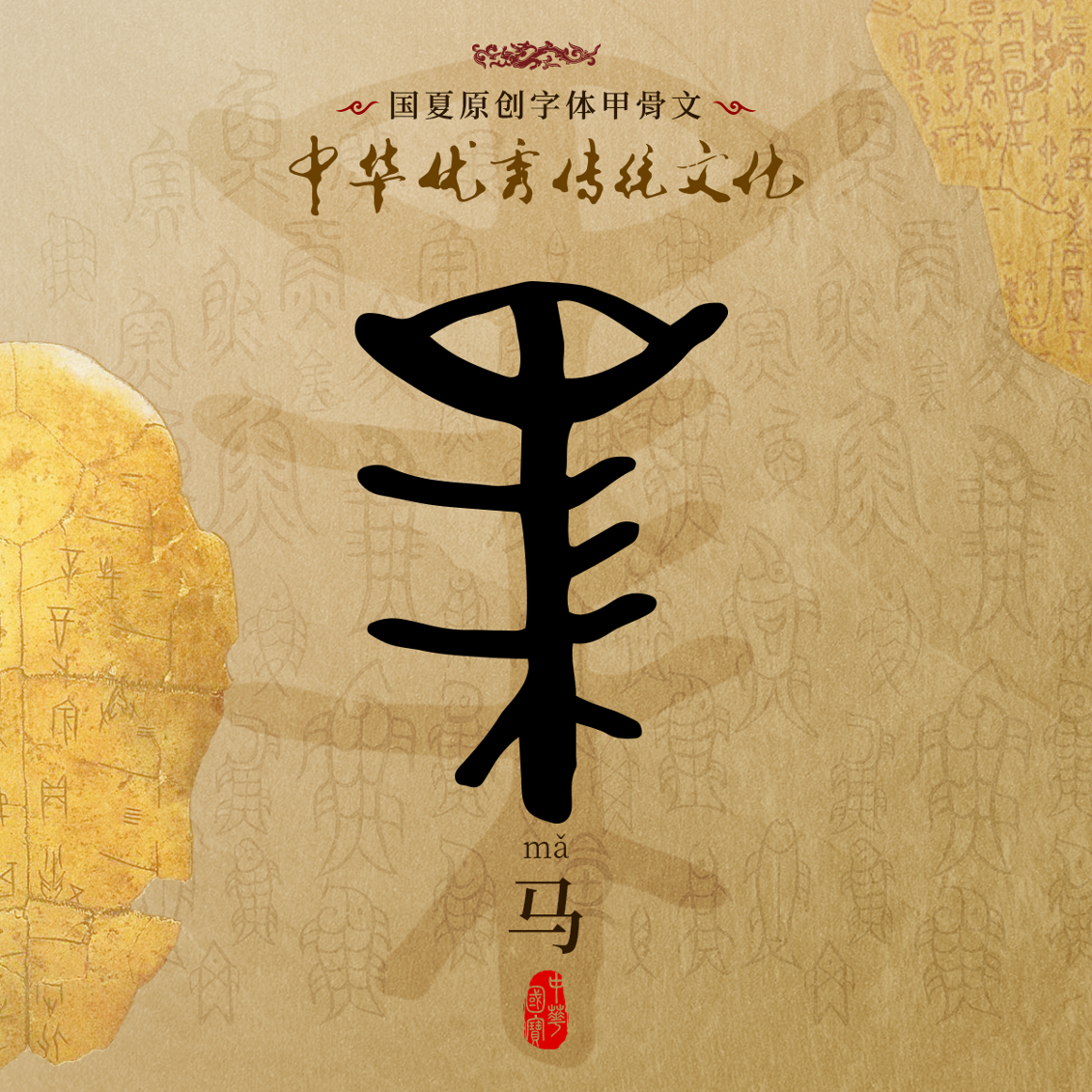 马-国夏字库甲骨文-中华优秀传统文化