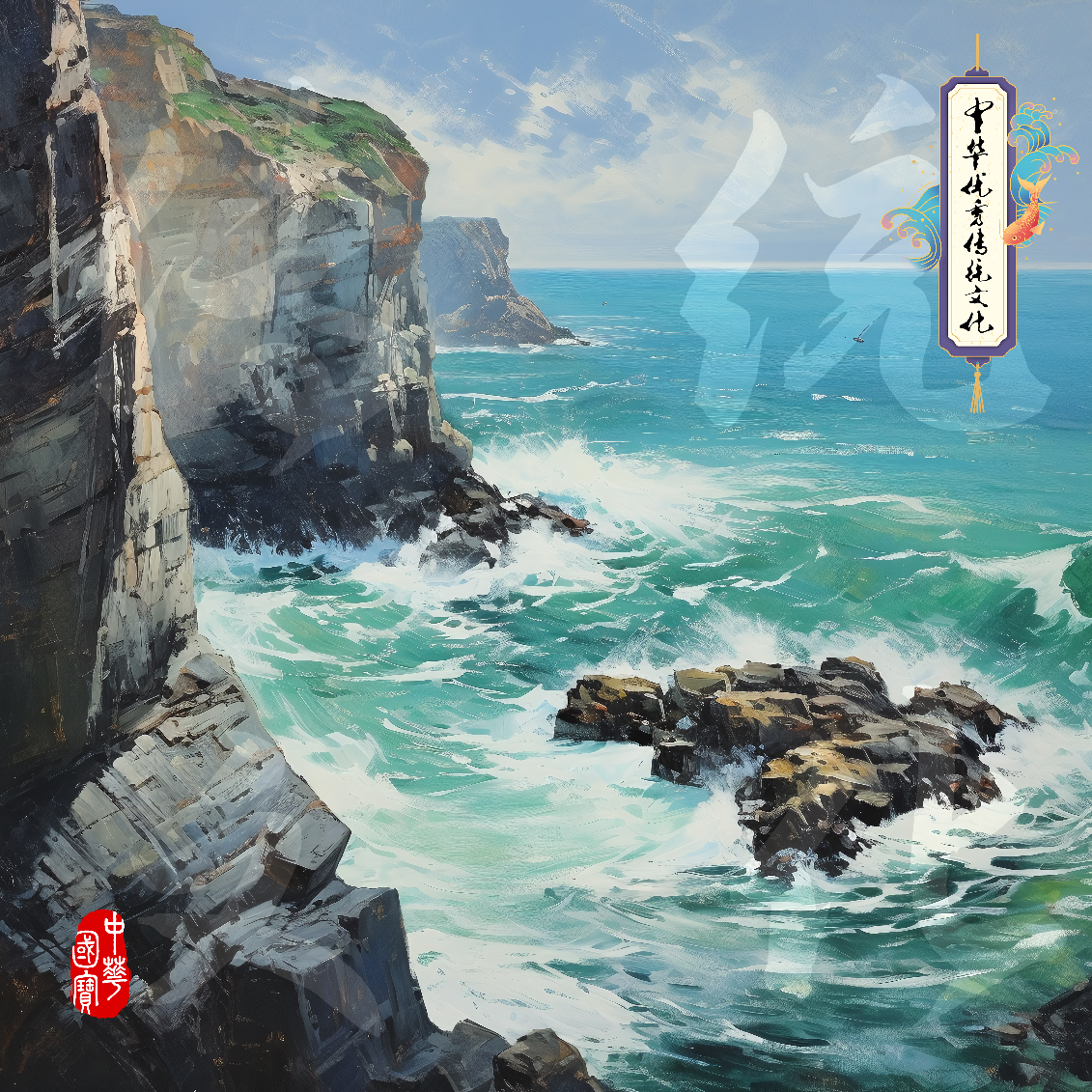 碧岚悬崖-海浪拥石-中华优秀传统文化