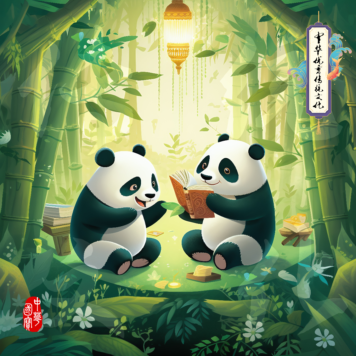 竹影心读-熊猫绘乐-中华优秀传统文化