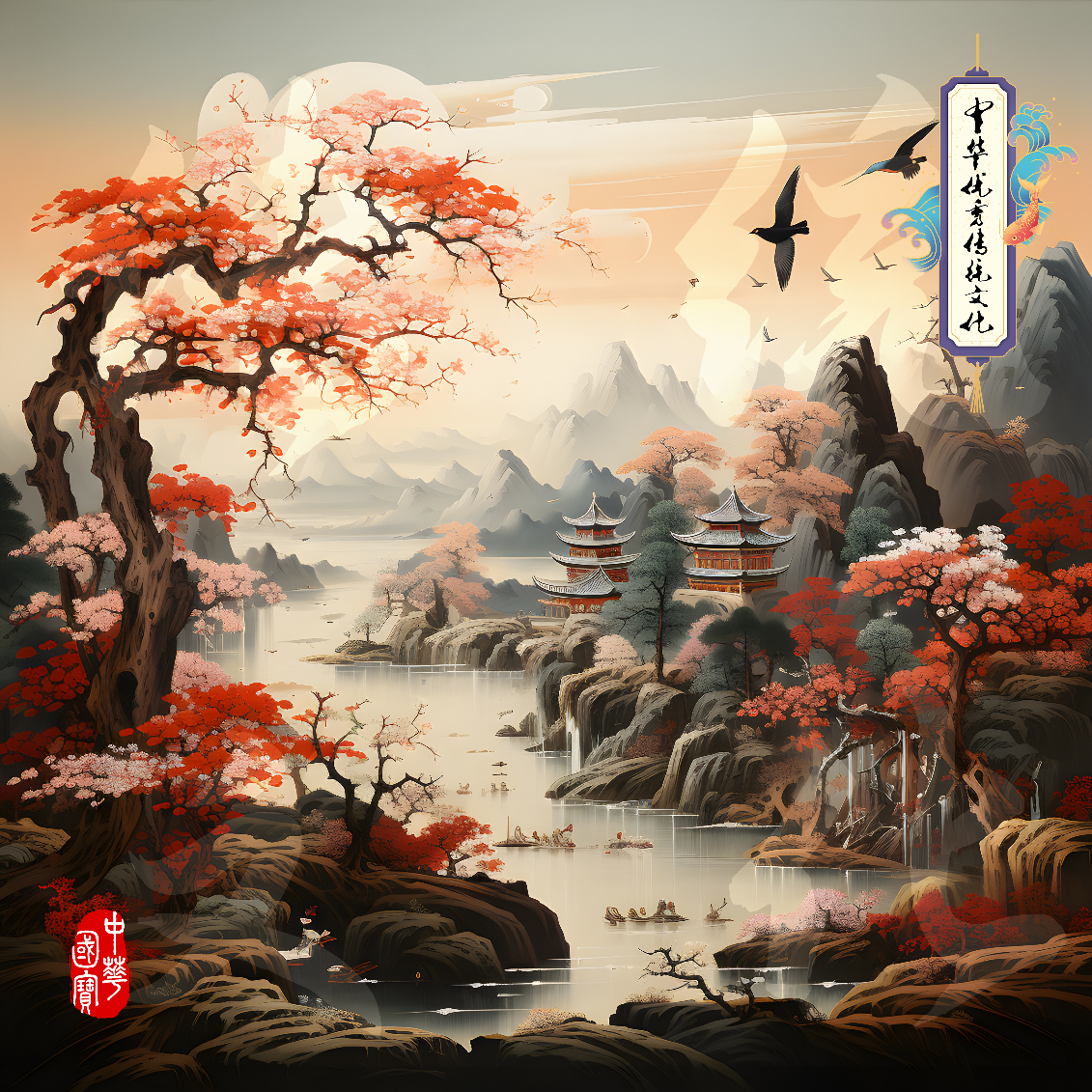 山水寺庙-大好河山-中华优秀传统文化