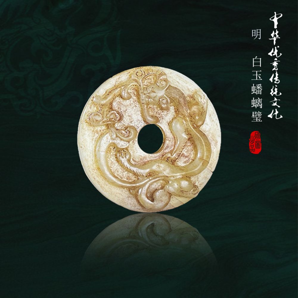 明·白玉高浮雕蟠龙纹璧一对-中华国宝系列