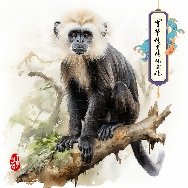 白头叶猴-十大国宝水彩-中华优秀传统文化