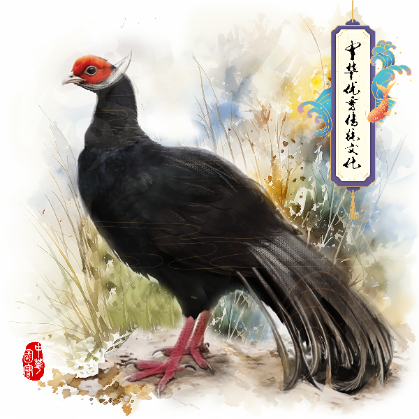 褐马鸡-十大国宝水彩-中华优秀传统文化