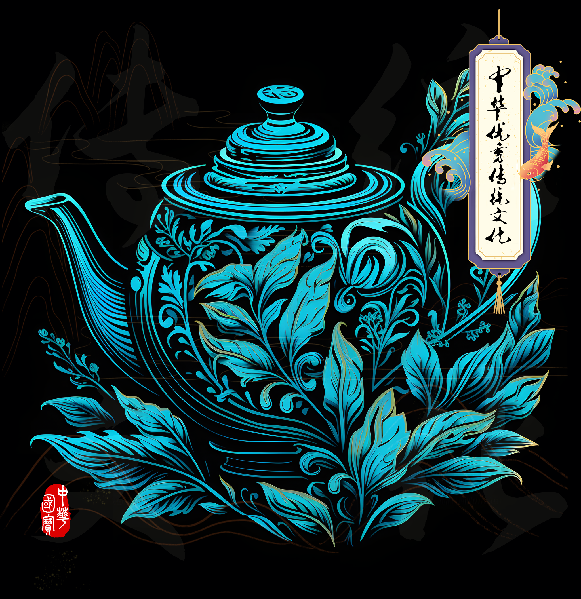 蓝叶壶-多彩茶壶-中华优秀传统文化