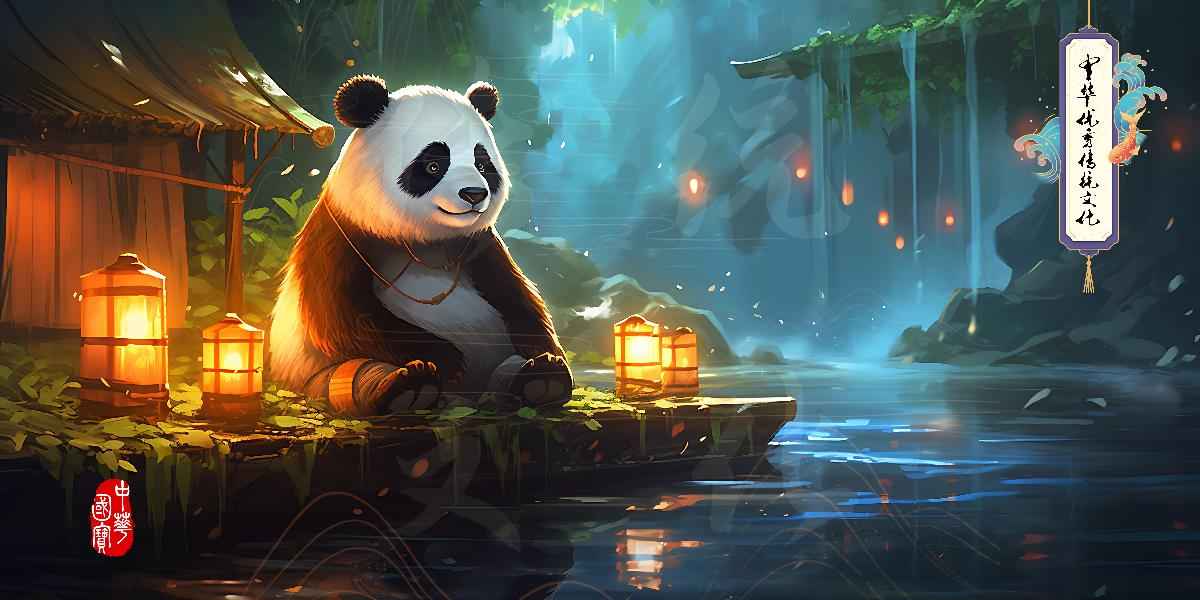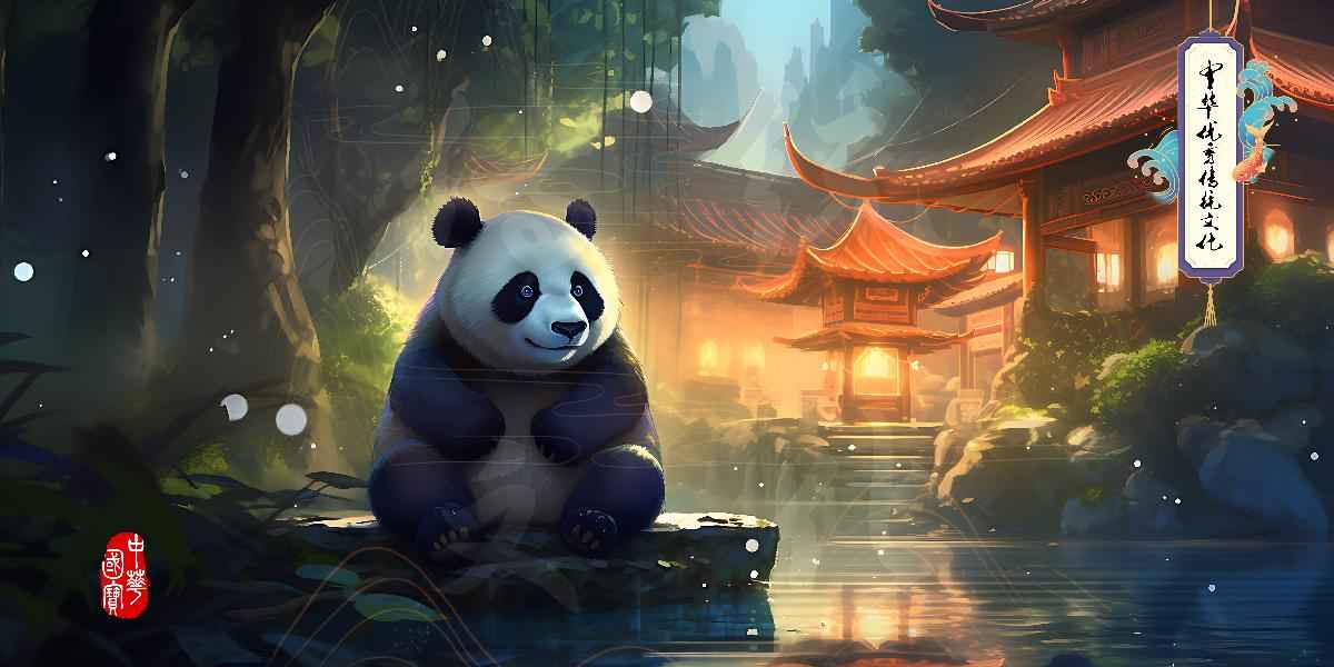 熊猫竹居-熊猫国风-中华优秀传统文化