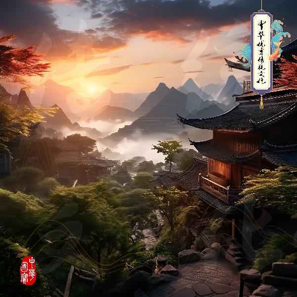 山居-山村日出-中华优秀传统文化