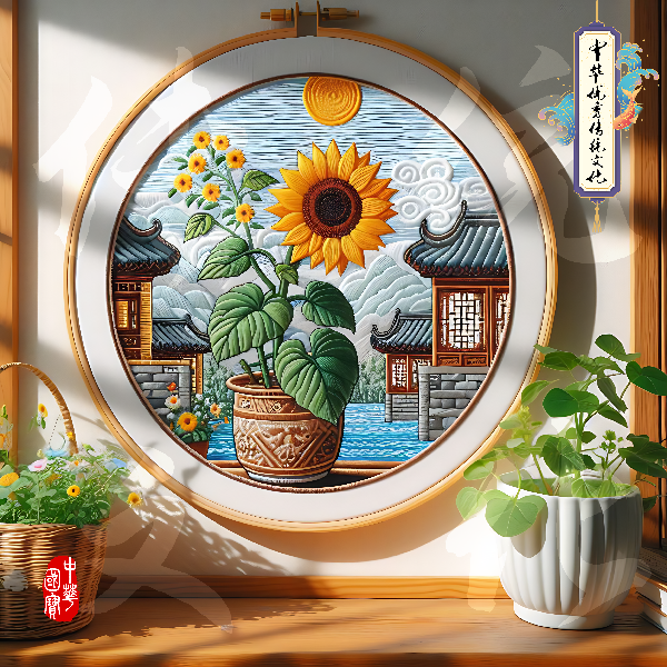 蓝白葵-葵花绣阳-中华优秀传统文化