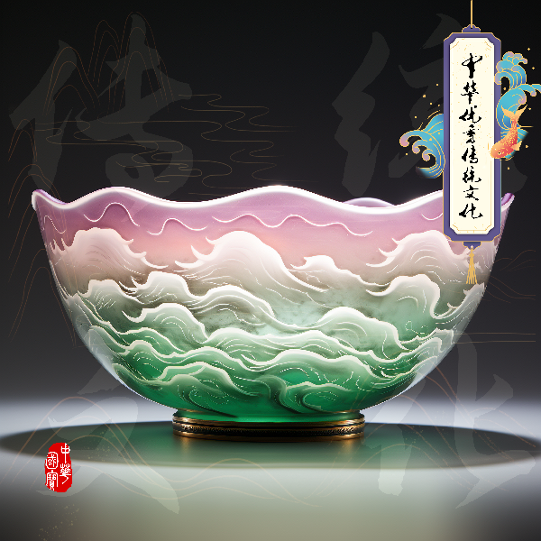 粉边翠纹碗-翠云红海碗-中华优秀传统文化