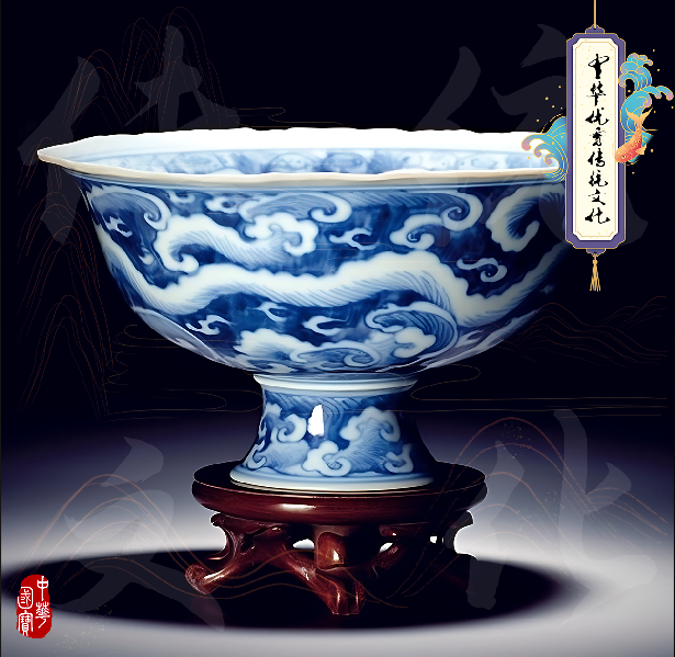 品瓷-蓝纹陶瓷碗-中华优秀传统文化