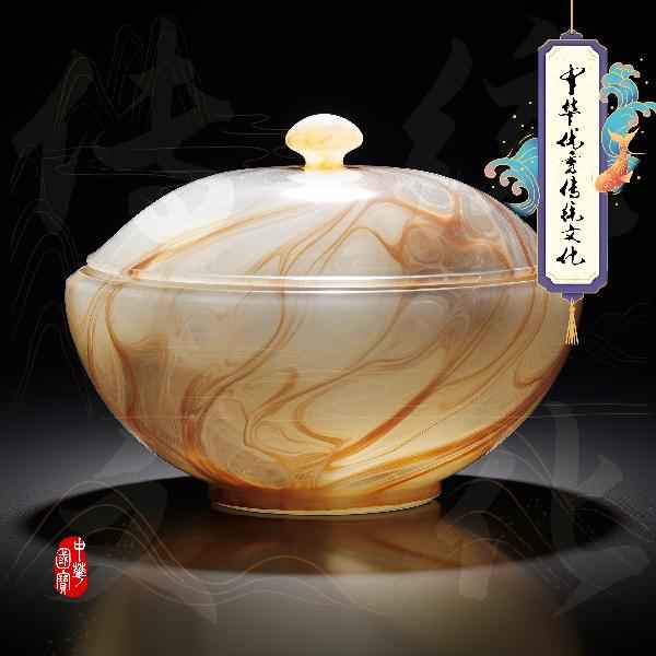雪花大理石盖碗-大理石碗具-中华优秀传统文化