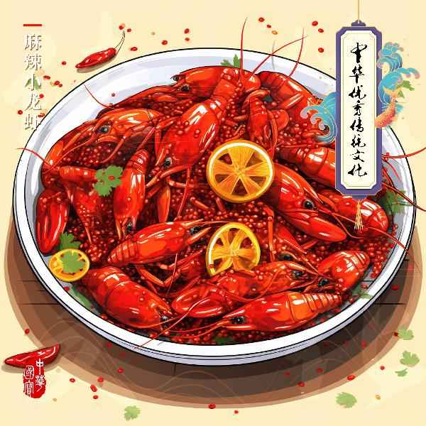 麻辣小龙虾-美食中华插画-中华优秀传统文化