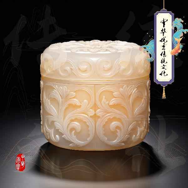 羊脂白玉盒-多彩玉雕盒-中华优秀传统文化