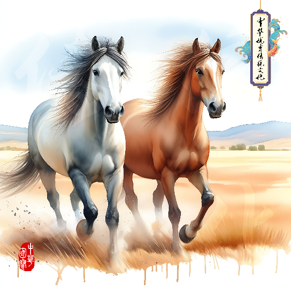 母爱行者-水彩马境-中华优秀传统文化
