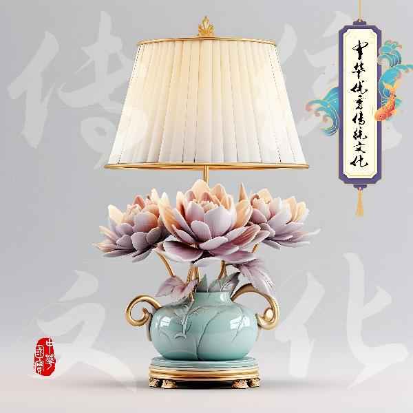 睡莲花灯-花雕台灯-中华优秀传统文化