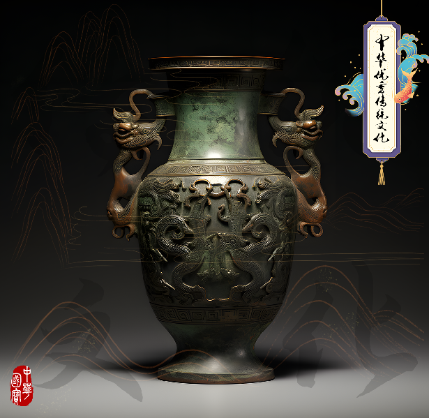铜瓶雅韵-纯铜花瓶-中华优秀传统文化