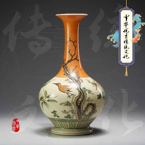 陶艺花鸟-花鸟陶瓷瓶-中华优秀传统文化