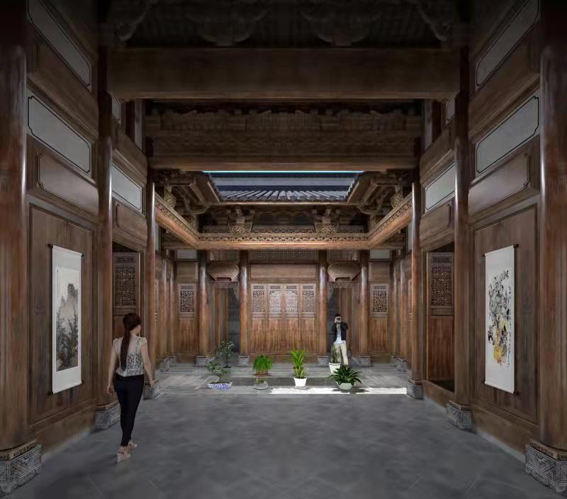 明今第”位于江西省宜春市丰城市高安市蓝坊镇,古建资产年代清代乾隆年间,建筑面积555㎡,建筑规格为木架结构,木架结构多有雕刻,主房为三进三天井,外设轿厅格局。厅堂、天井厢房门窗及内屋檐的挑枋、雀替、横梁、横枋、斜撑等木构件,全为浮雕、镂空雕人物、动物、花草虫鱼及龙凤吉祥图案。建筑构件已全部修复和复建,构件均有编号及完整图纸。