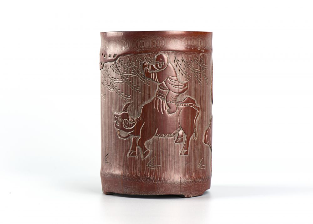 名称:竹雕笔筒(朱小松款)