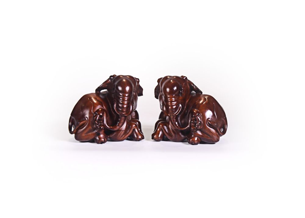 名称:黄杨木雕太平有象镇纸(一对)