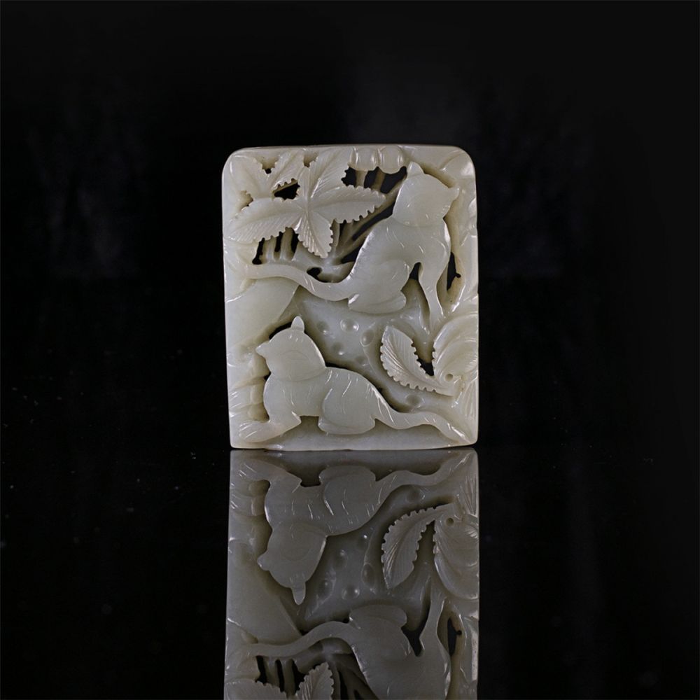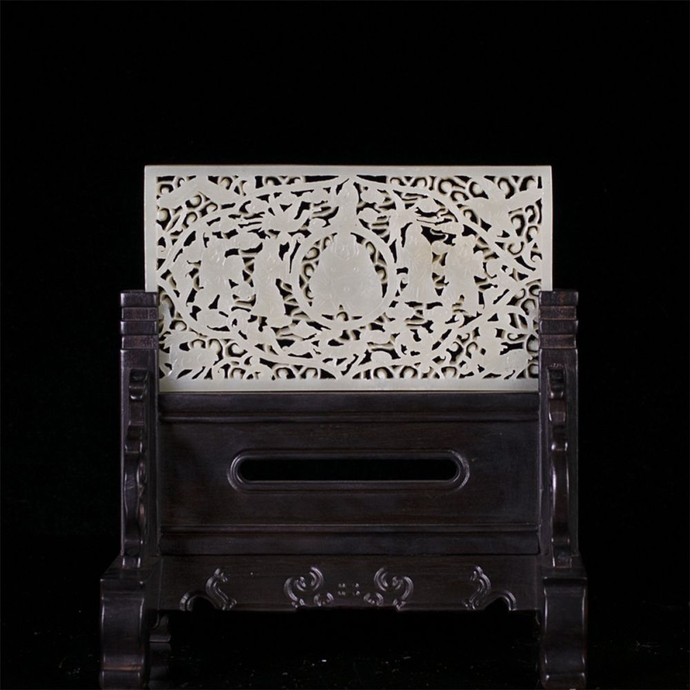 名称:清·和田玉·透雕福寿插屏