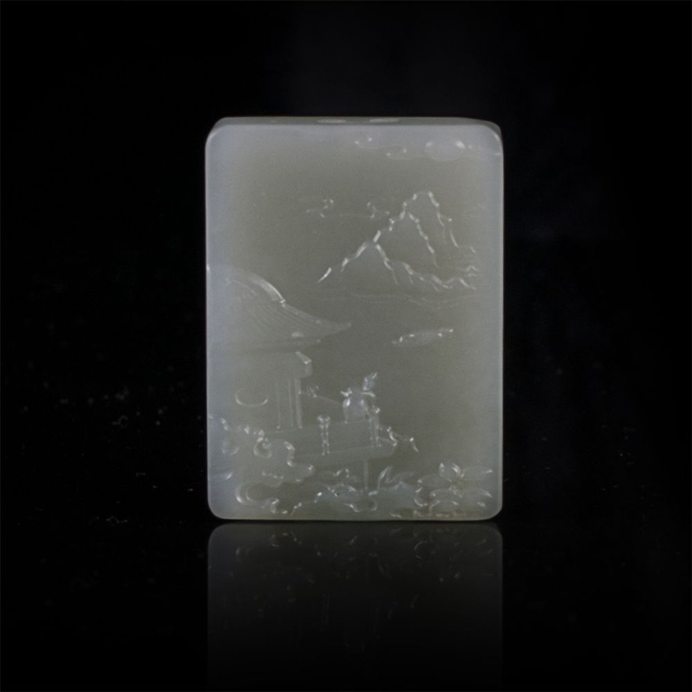 名称:清·和田玉春水纹插屏