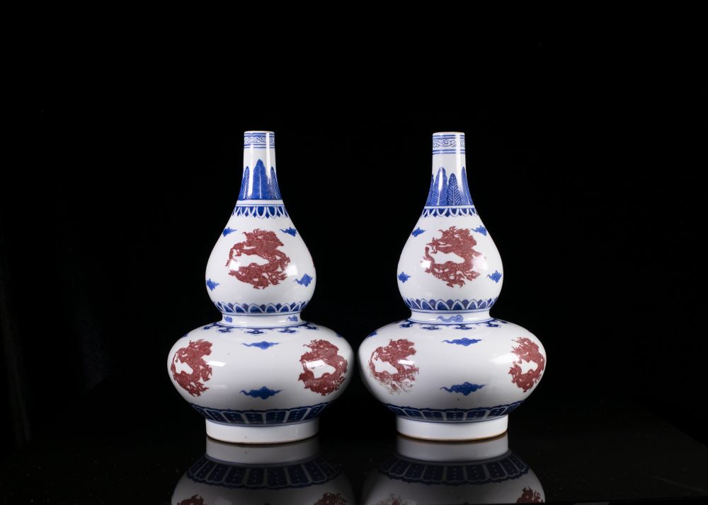 名称:清·大清康熙年制款青花釉里红葫芦瓶 (一对)