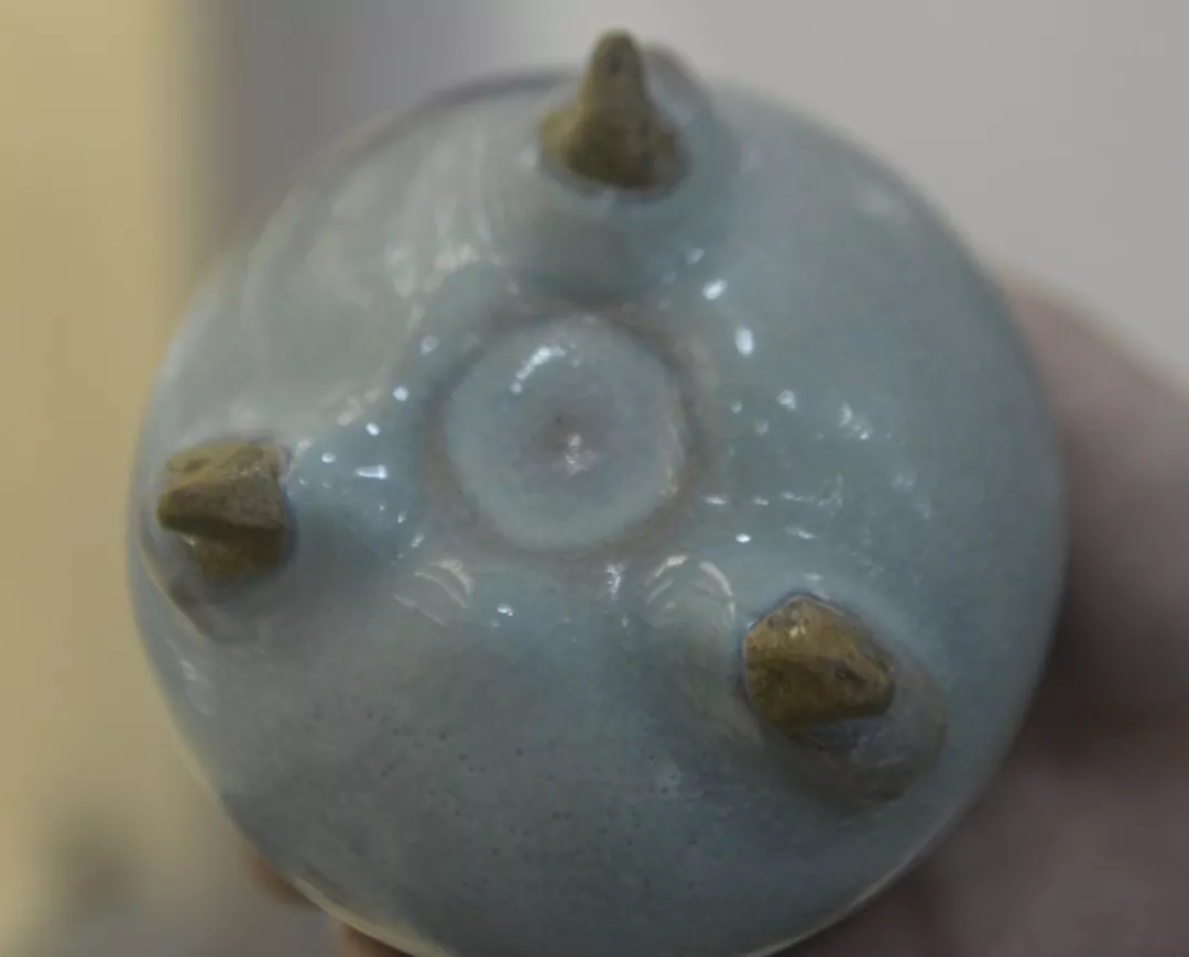 介绍:均窑以其“入窑一色,出窑万彩“的艺术特点出名。该炉釉面有细小纹片,结晶呈有深浅不一的红紫色,口大,腹鼓,有三足,造型及呈色有着均窑特有艺术美感。