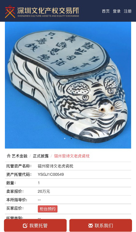 深圳文交所艺术品资产托管平台,是实现艺术品资产化的交易平台,是深圳文交所艺术金融业务的发端。经过鉴定和评估的各类艺术品,首先通过艺术品资产托管平台托管,在该平台托管交易,实现登记备案及托管、协议转让两大功能。