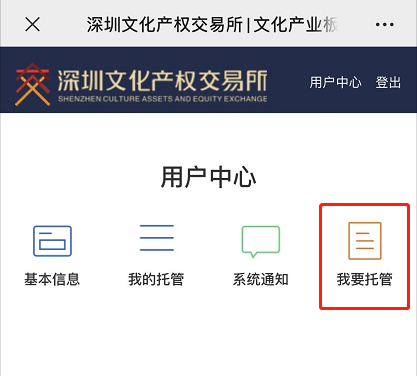 1. 用户使用手机完成注册后,便可登录用户中心,选择“我要托管”