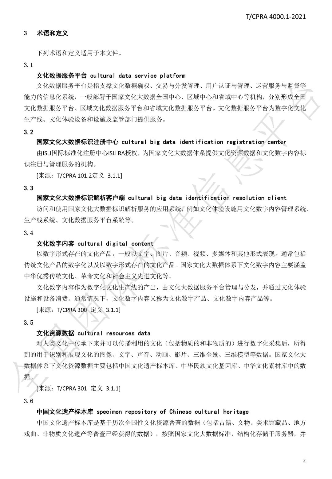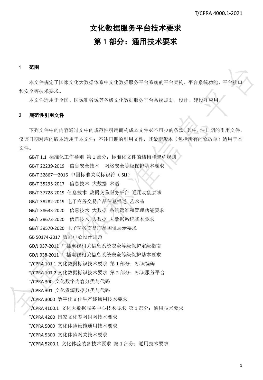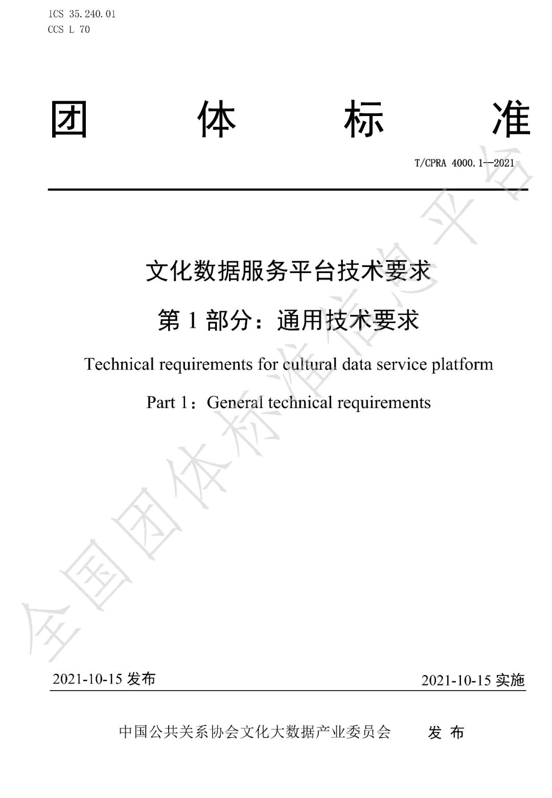 数据超市丨《T_CPRA 4000.1—2021 文化数据服务平台技术要求 第1部分:通用技术要求》
