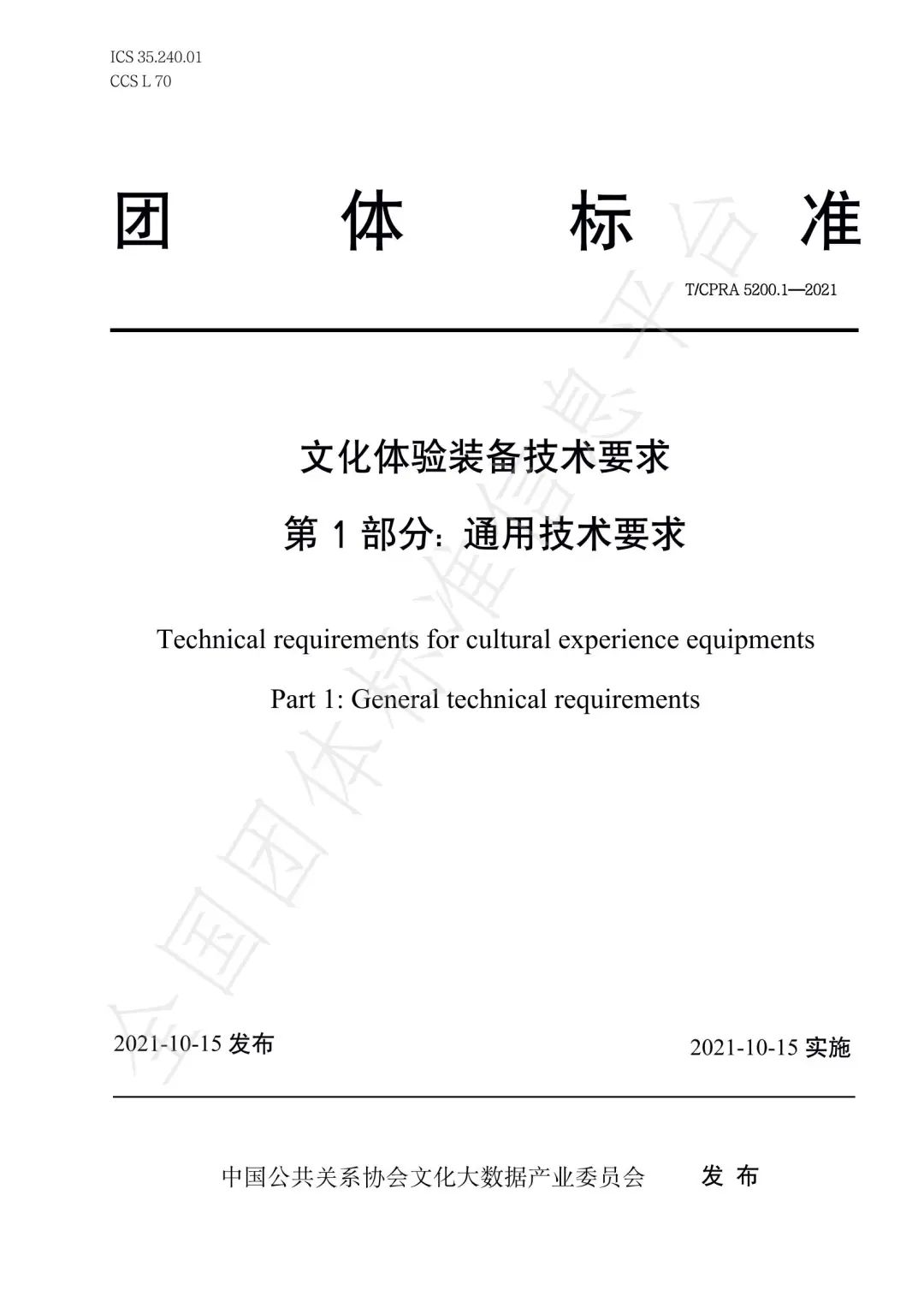 数据超市丨《T_CPRA 5200.1—2021 文化体验装备技术要求 第1部分-通用技术要求》
