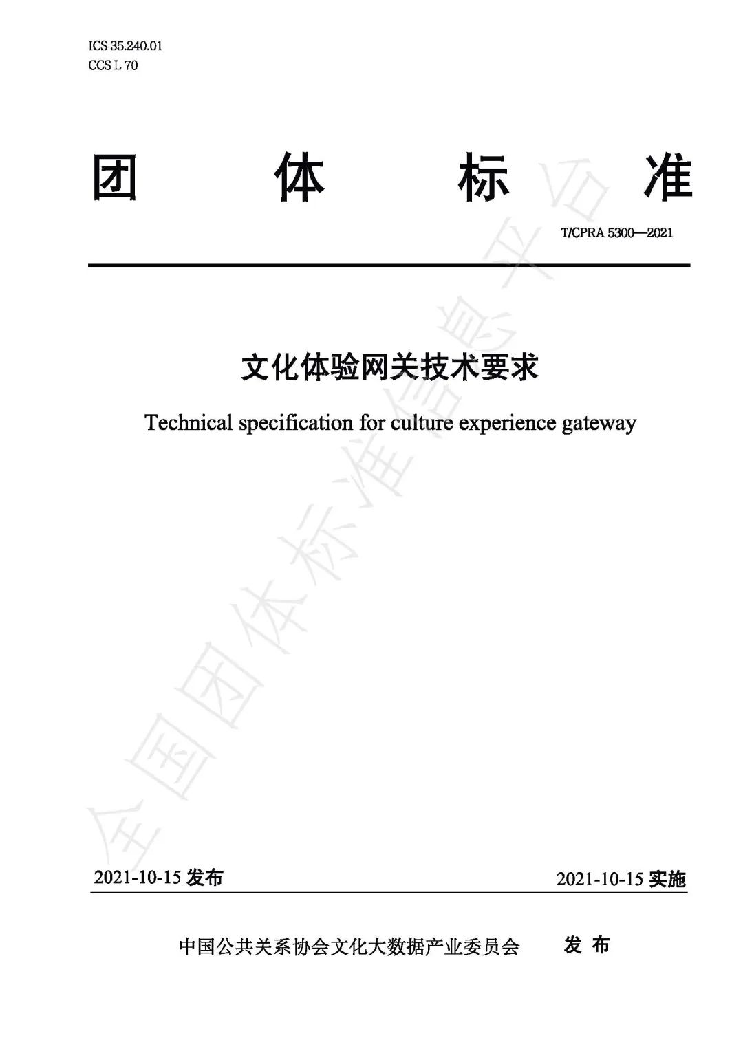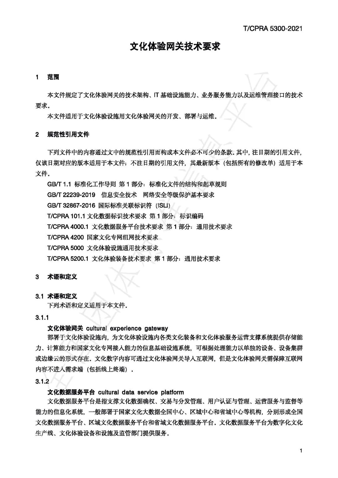 数据超市丨《T_CPRA 5300—2021 文化体网关技术要求》