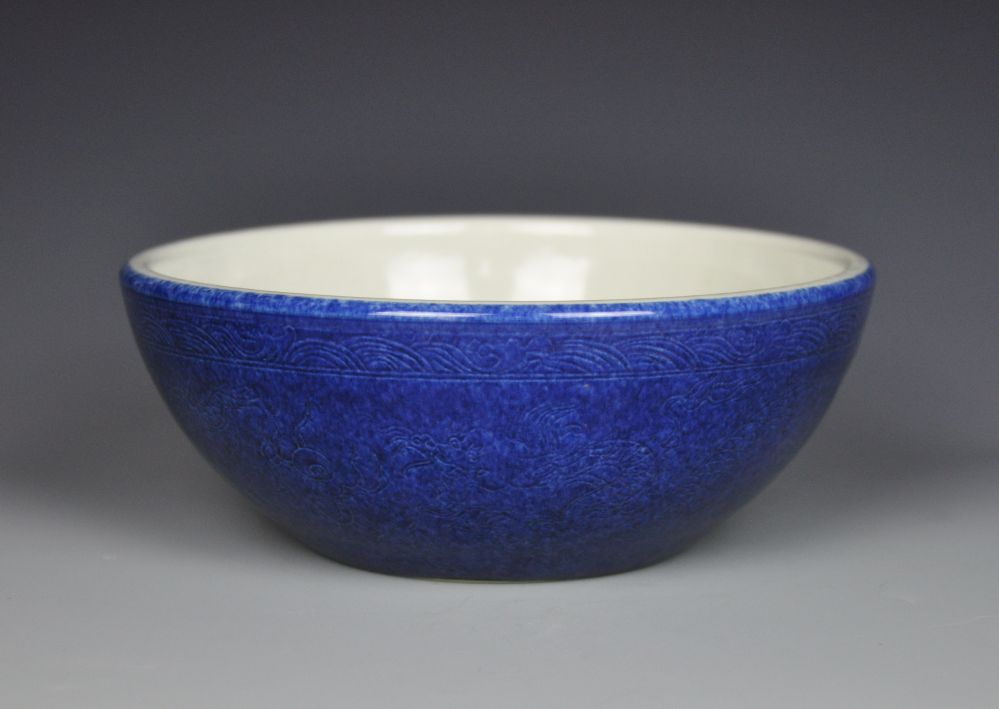 托管资产名称:雪花蓝釉暗刻海水龙纹大碗