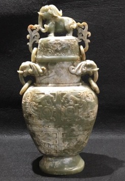 托管资产名称:青玉雕饕餮纹象耳盖瓶 已摘牌