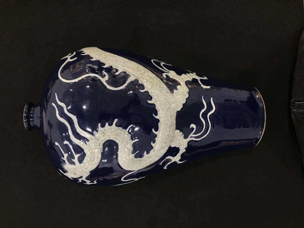 托管资产名称:宝石蓝釉留白龙纹梅瓶(一对) 已摘牌