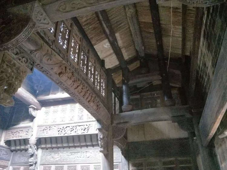 此宅平面呈“凹”字型,依次有天井,东西厢廊,正厅及东西厢房。为木结构承重砖墙围护二层楼房,外观粉墙黛瓦,为传统徽派建筑。厅堂为一明两暗布局,该隔扇窗,斜撑、雀替等构件具有一定学术价值,砖雕门罩保存完美 | |||