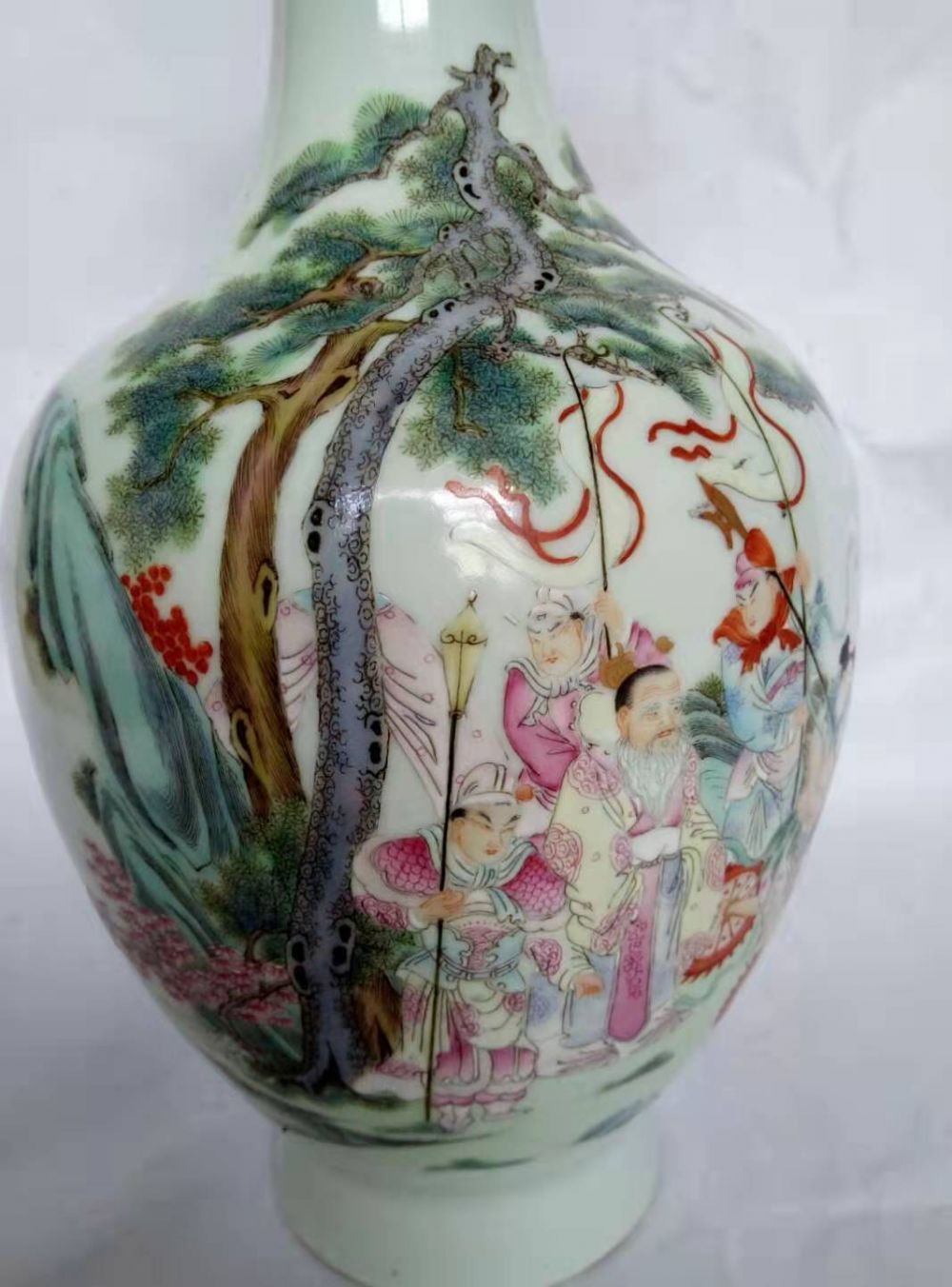 此器器型优美,人物绘画栩栩如生,纹饰周边迎光有明显蛤蜊光,此瓶收藏于2013年5月禹城市,2015—2016年经上海等多位专家上手鉴定认可。
