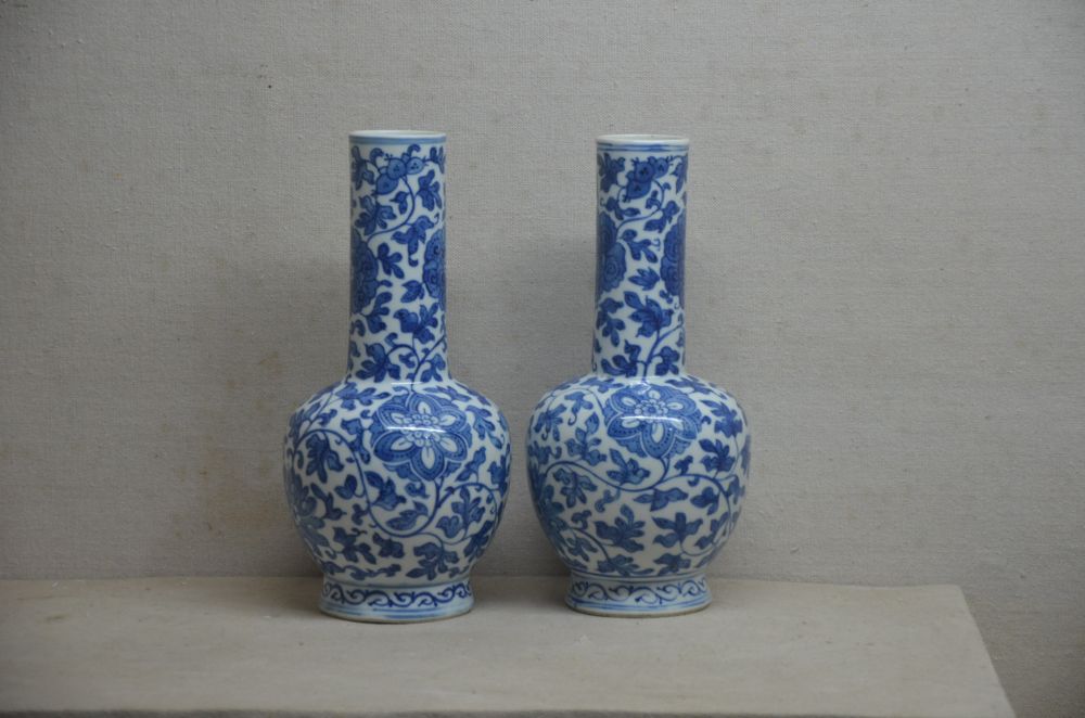 托管资产名称:仿青花缠枝莲长颈瓶一对 已摘牌