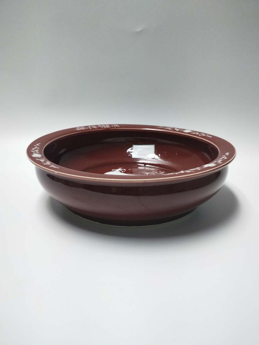 此釉里红龙纹洗口径:28.8cm,底径:20.8cm,高:8cm,折口,弧壁,平底。内外壁红釉。用料较厚,釉色均匀,底部泛红。洗内底刻划有龙纹,形象矫健勇猛,栩栩如生。是一件难得的精品,值得收藏!