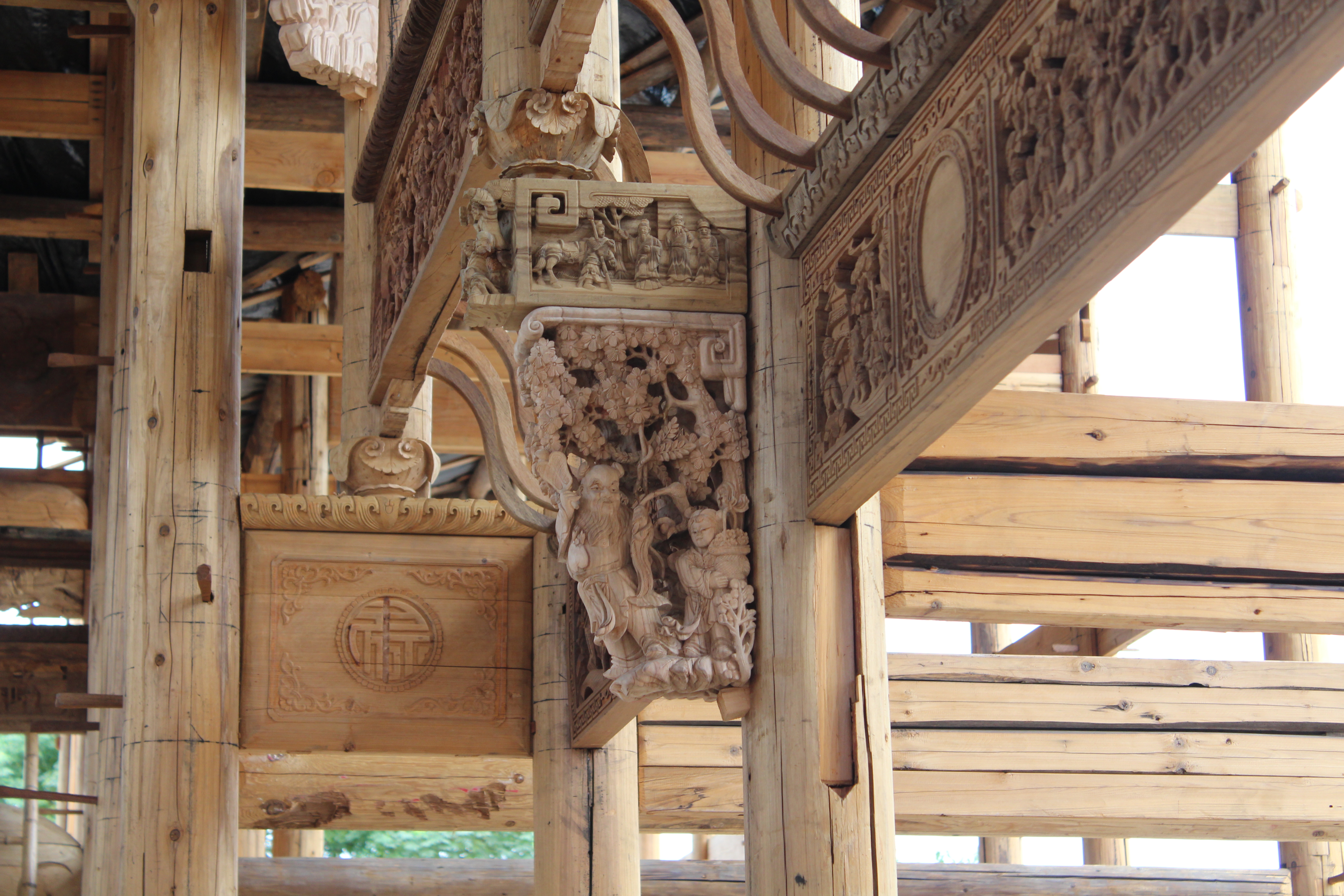| “大夫第”位于江西省抚州市临川区展坪镇,建筑面积622㎡,建筑规格为木架结构,木架结构多有雕刻,主房为三进两天井格局。厅堂、天井厢房门窗及内屋檐的挑枋、雀替、横梁、横枋、斜撑等木构件,全为浮雕、镂空雕人物、动物、花草虫鱼及龙凤吉祥图案。建筑构件已全部修复和复建,构件均有编号及完整图纸。 | |||