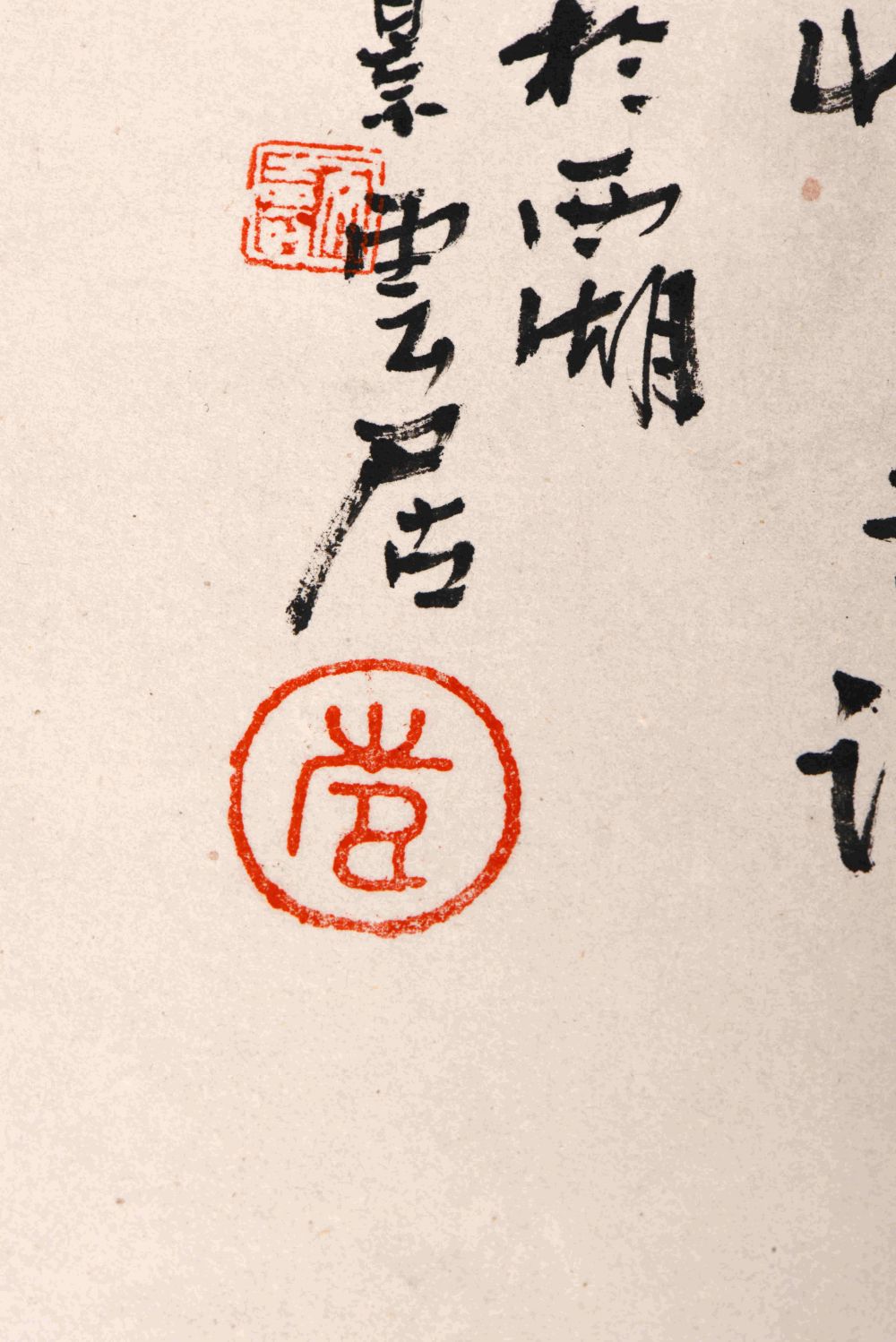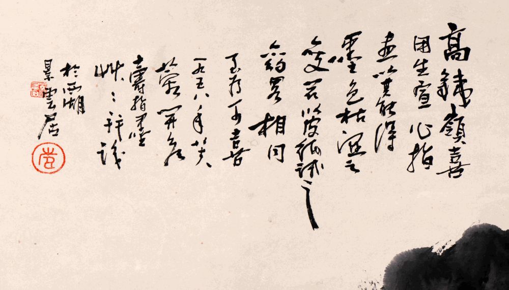 潘氏指黑,奇冠古今。以指作曲,始于高其佩,但至潘氏更胜于蓝。该画作构图雄奇, 墨色淋湍,意境高边,视觉冲击力极强,松枝、山石构造奇险跌右,上下两只秃鸠烈白分明,顾盼呼应,气韵贯通。