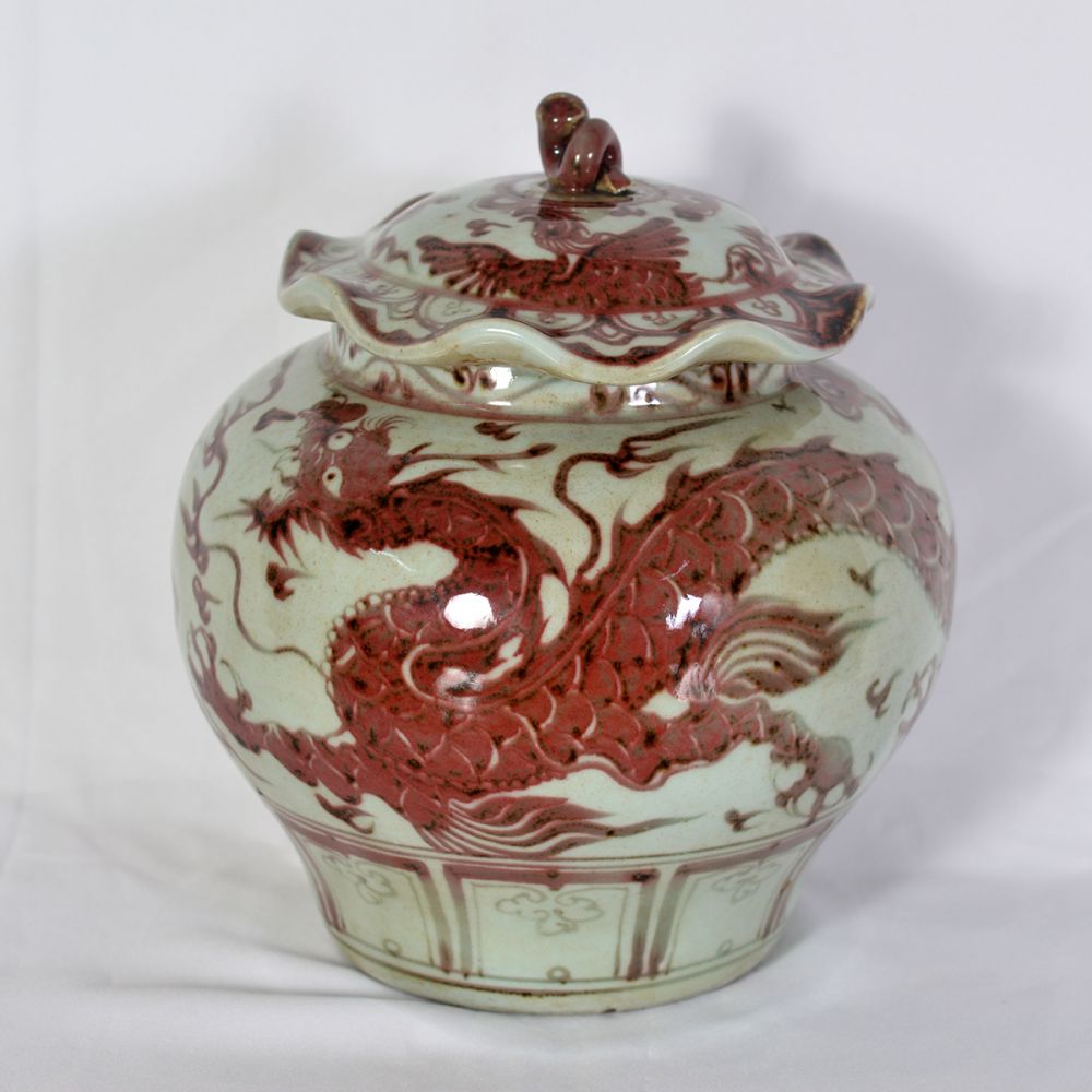 红釉开光贴塑青花釉里红花卉纹玉壶春瓶(一对) |