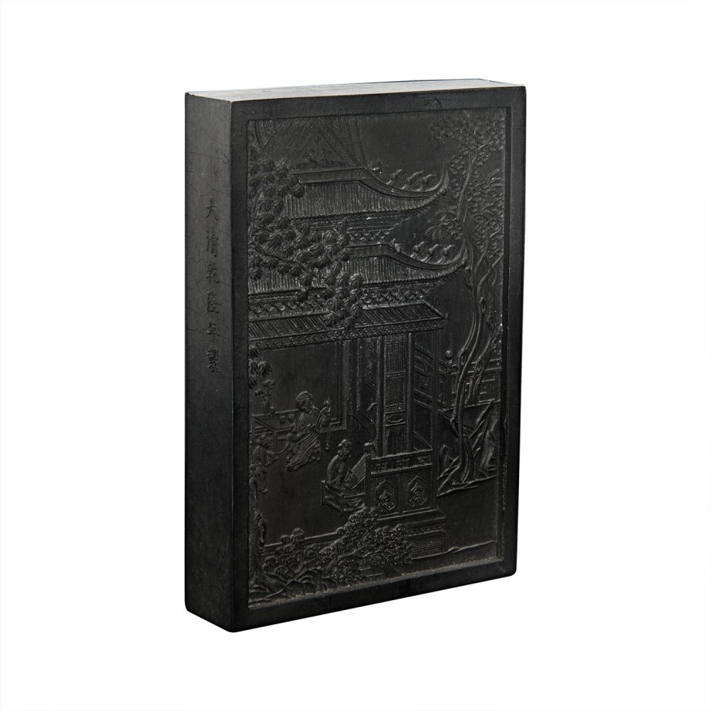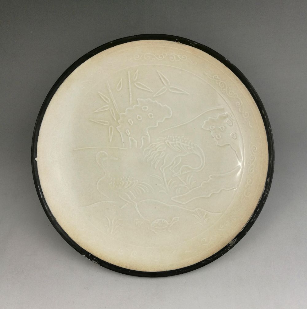 定窑白釉银釦印花竹石龟鹤纹盘 |