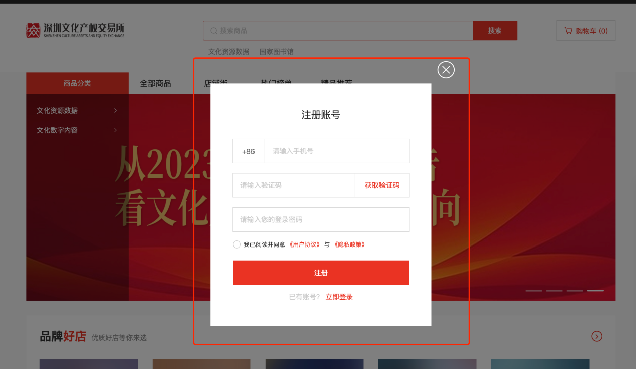 第三步 勾选《深圳文化产权交易系统服务与隐私协议》。
